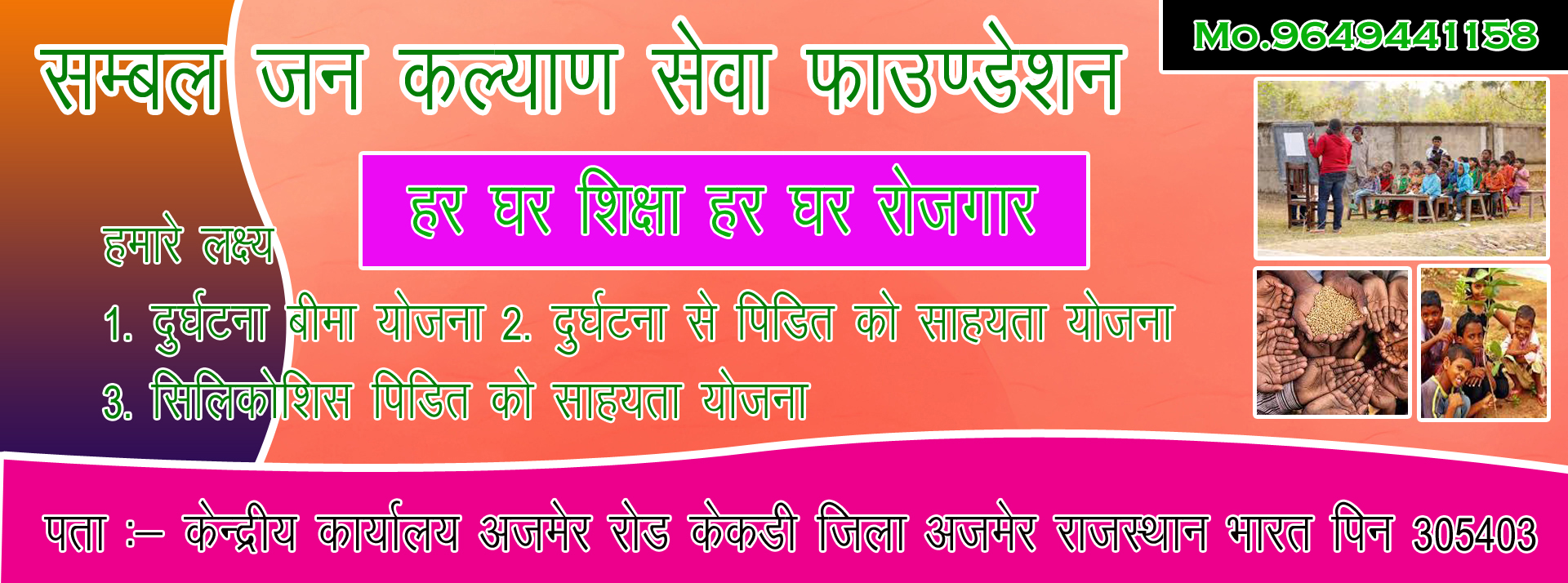 यह संस्था गैर राजनीतिक एवं गैर लाभकारी संगठन है इसका उद्देश्य मानव कल्याण गरीबी उन्मूलन कार्यक्रम नागरिक मुद्दे जन जागरूकता अभियान चलाना पर्यावरण संरक्षण महिला सशक्तिकरण तथा जीवनोपयोगी शिक्षा हेतु कृत संकल्पित होकर कार्य करना आदि कार्य 1. ग्रामीण विकास को बढ़ावा देना 2. सरकारी योजनाओं का प्रचार प्रसार करना 3. दुर्घटना से मृत्यु होने पर परिवार को सहयोग राशि दिलवाना 4.व्यावसायिक प्रशिक्षण कार्यक्रम रोजगार उपलब्ध करवाना 5.कमजोर समुदाय की सहायता करना और वंचित वर्ग को लाभ दिलाना 6.नारी शक्ति को सुरक्षा सम्मान व स्वालंबन के क्षेत्र में कार्यरत करना 7. सिलिकोसिस पीड़ित व्यक्तियों के लिए सहायता योजना